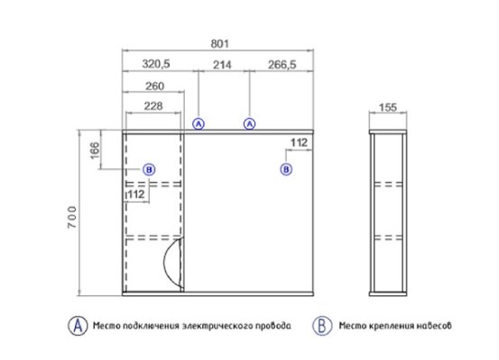 Зеркало Callao 600 правое со спотом
