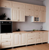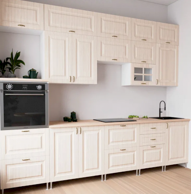 Модульная кухня Престиж Сандал светлый (Миф) – товар доступен к покупке в интернет-магазине vladimirskiy-dommebeli.ru. Цена – 26 419 руб. без учета доставки. Стоимость дополнительных услуг и сроки получения мебели уточняйте у менеджера. Возможен безналичный расчет, оплата по карте на сайте.