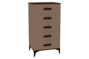 Комод высокий КАРА 3 с 5 ящиками очень вместительный. Здесь найдется место для хранения аксессуаров, одежды, белья, книг, документов, косметики и других личных вещей. Ящики оснащены шариковыми направляющими полного выдвижения. Это дает возможность использовать всю полезную площадь ящика. Фигурные металлические опоры поднимают комод над полом и придают ему изысканный силуэт.