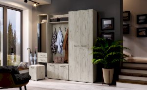 Модульная система для прихожей Италия - это модульная программа, имеющая в своем составе 16 элементов для грамотного обустройства прихожей. Фасады светлых декоров с комбинируются с тёмным корпусом.