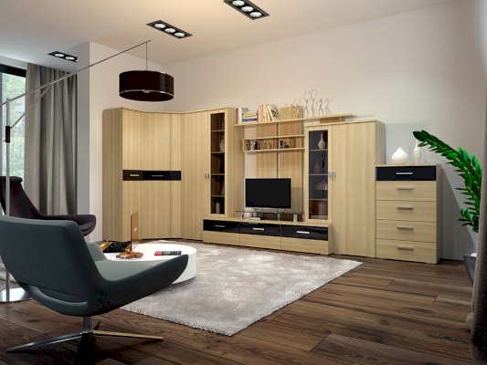 Андорра — это образец оптимального сочетания таких важных для современной мебели характеристик как: открытые стеллажи, закрытые системы хранения, шкафы с витринами.