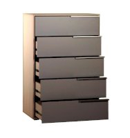 Это удобный, универсальный предмет мебели, который может служить как трюмо или подставка под сувениры или технику, поможет упорядочить и разместить как крупные вещи, так и «мелочевку». И, что немаловажно — его можно «замаскировать» почти под любой стиль интерьера. В комоде пять выдвижных ящиков, оснащенных шариковыми направляющими.